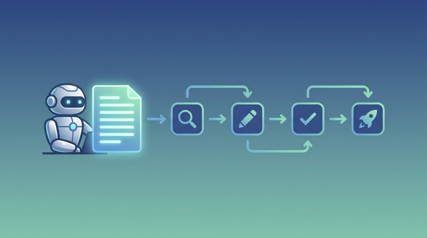 Jottler is not a writing assistant you prompt and babysit. It is an autonomous agent pipeline that handles keyword research, article writing, image generation, and CMS publishing without human intervention.