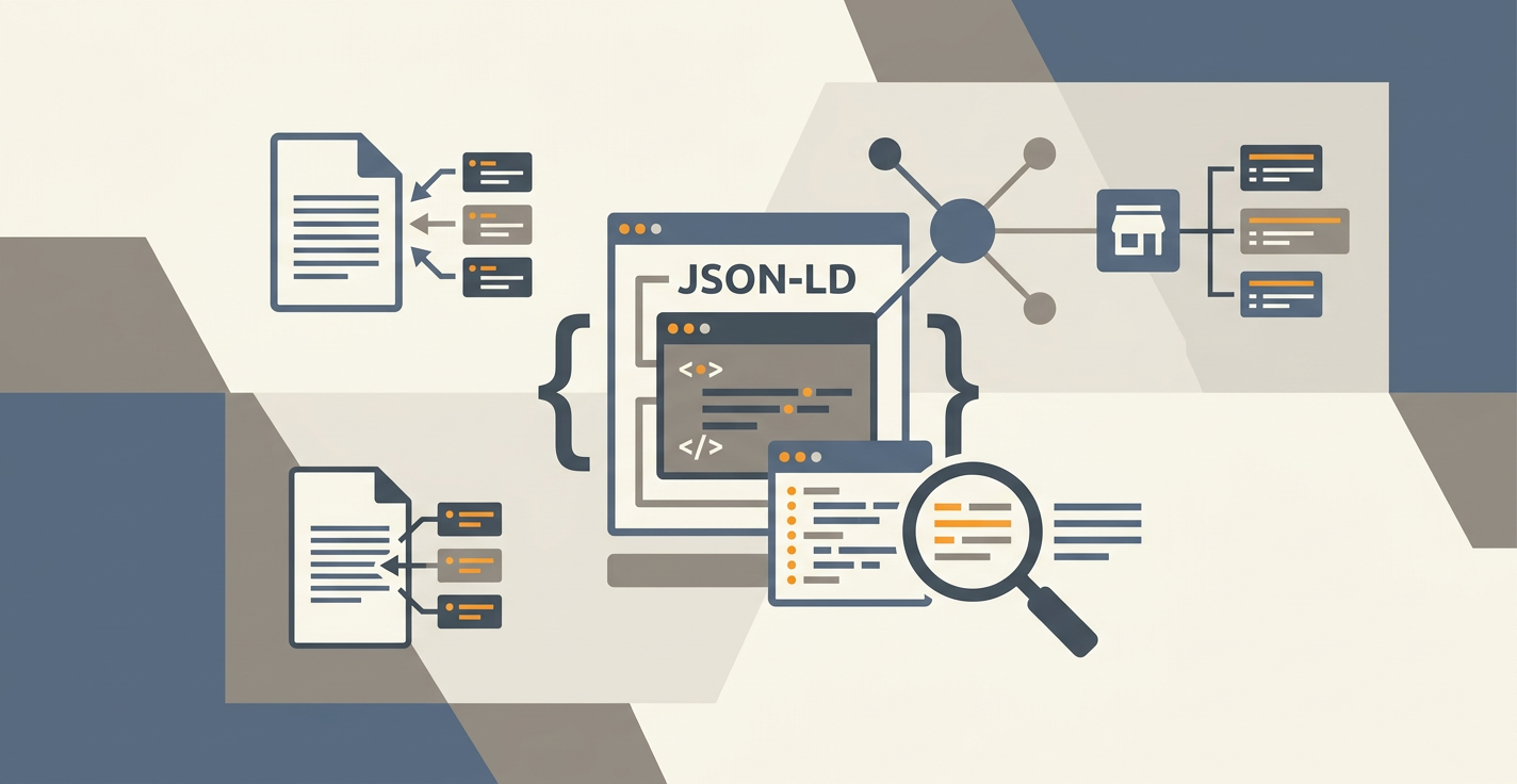 For manual work, write the JSON-LD in a <script> tag in the page head. Use the @graph syntax to combine multiple types in one block, with @id URIs to reference between them. Validate before deploying.